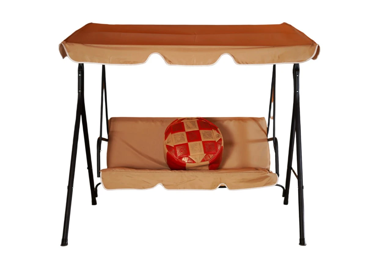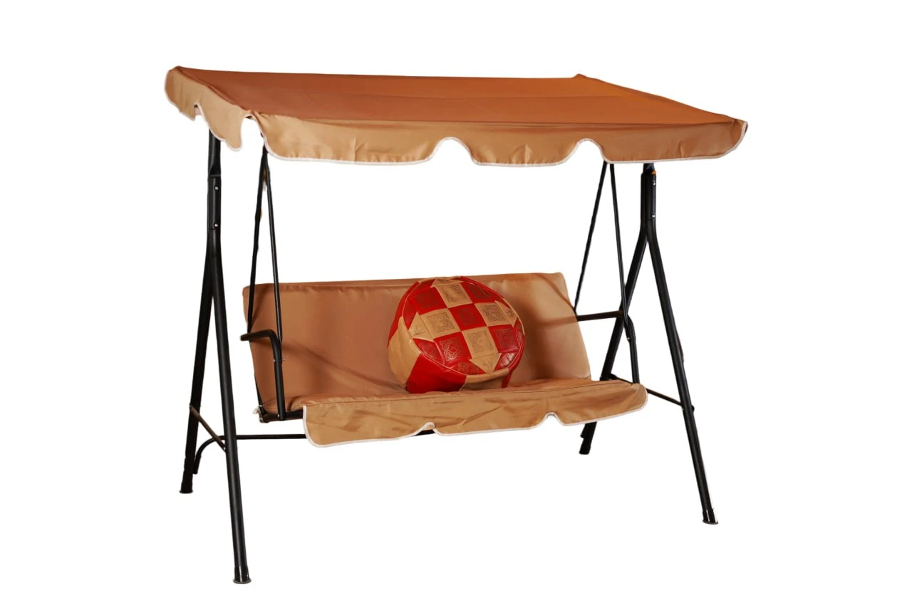 ارجوحة حديقة مع مظلة علوية للحماية من اشعة الشمس تحتوي على وسادة دائرية الشكل بلونين مناسبة للاسترخاء في الحدائق وعلى الشرفات تتميز بتصميم بسيط مريح وعملي