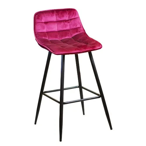 General Description This stool combines bold color with elegant design, featuring a premium velvet seat in a warm berry hue with a sophisticated quilted square pattern. The black metal legs provide a strong visual balance to the vibrant seat, making it an eye-catching centerpiece for any contemporary space.