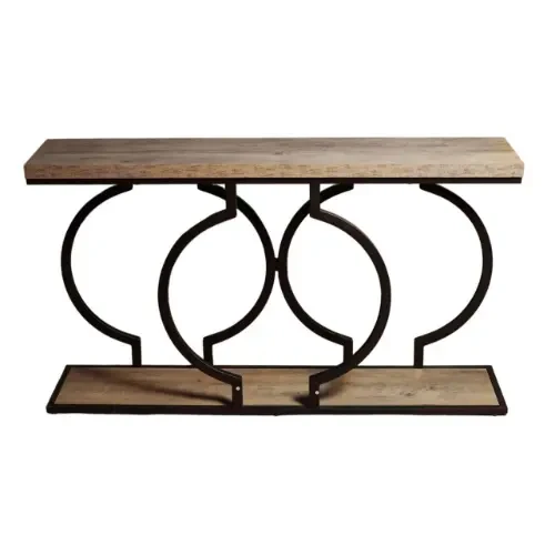 Experience a unique industrial design that masterfully combines the natural warmth of wood with the architectural strength of black metal. This piece creates a stunning visual balance, making it an ideal statement for entryways, hallways, or as a sophisticated sofa-back table.