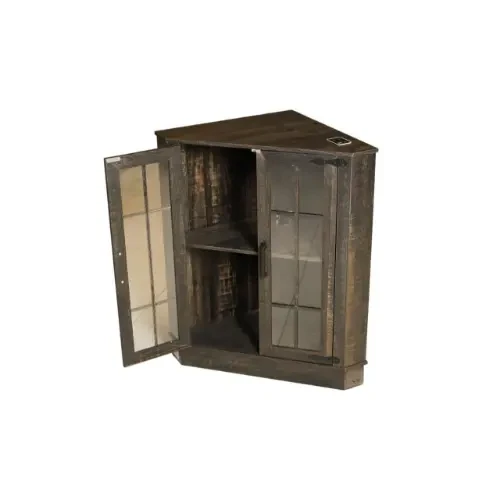 A rustic corner cabinet that blends the charm of classic aesthetics with modern functionality.