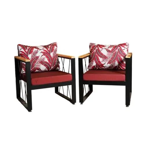 The chairs feature a modern and elegant design that combines metal, wood, and fabric, giving them both an attractive and durable appearance.