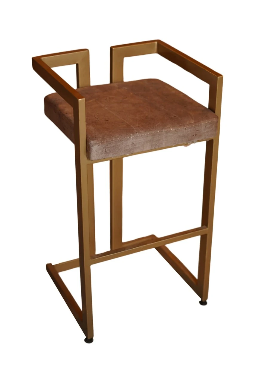 كرسي بار بتصميم مربع الشكل يتميز باطار معدني ذهبي ومقعد منجد اضافة الى ان الكرسي يتضمن مساند للذراعين ومسند للقدم لزيادة الراحة والثبات يتميز باطار بسيط مميز مما يجعله يتناسب مع اي ديكور