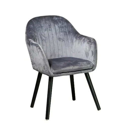The beauty of this chair stems from the deliberate contrast between the softness of premium velvet, with its captivating light-reflective ripples, and the bold strength of the Matte Black metal legs. The vertical channel tufting on the backrest adds an aristocratic dimension, breaking the stillness of the design and imbuing it with a character of grandeur and dignity.