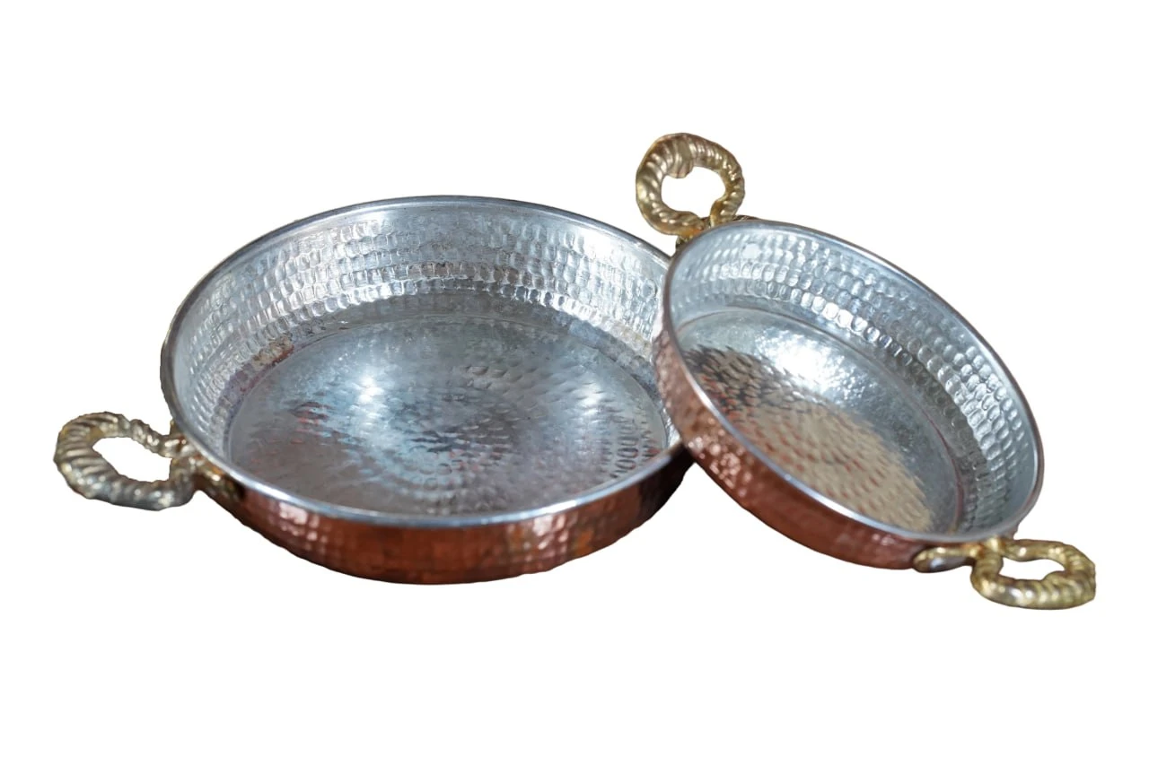 مقلاة نحاسية تراثية تتميز بتوزيع الحرارة بشكل متساوي مناسبة للطبخ ولديكور المطبخ التراثي