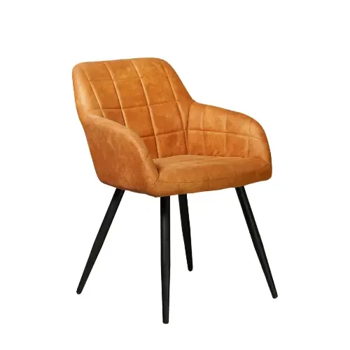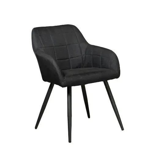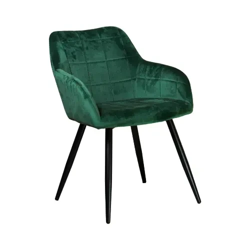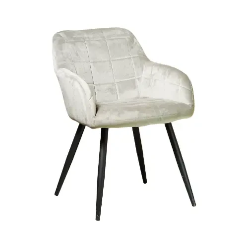 بما أن هذا الكرسي يتميز بالأرجل المعدنية السوداء ونمط المربعات المبطنة، فهو يجمع بين فخامة المخمل وطابع "Industrial Modern". إليك الترجمة الاحترافية التي تخاطب العميل الباحث عن قطعة "استثمارية" وعصرية: