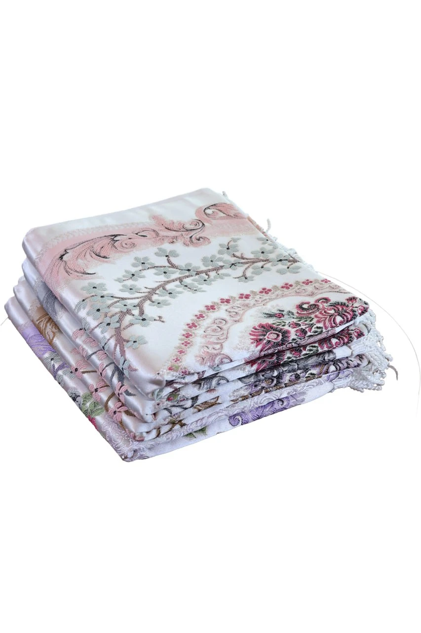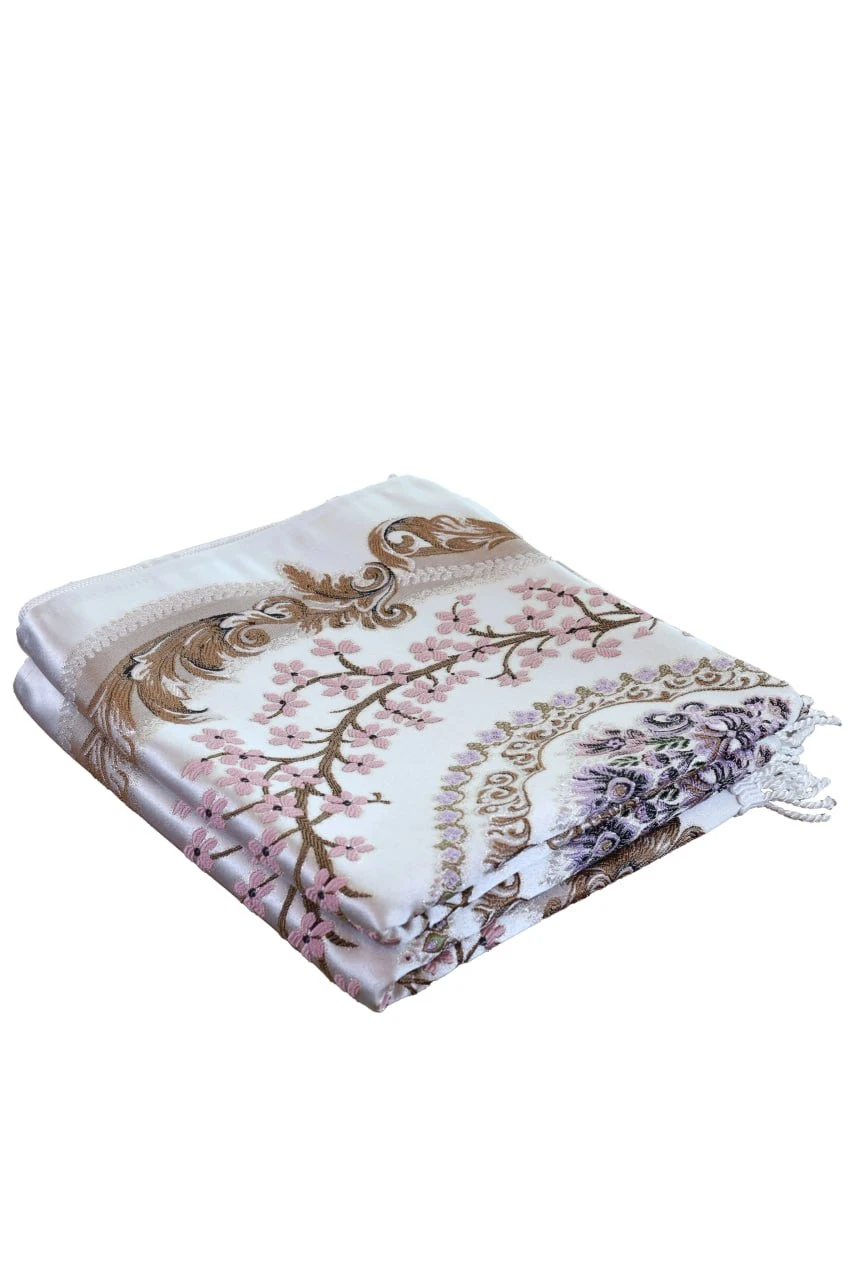 سجاد صلاه مع نقشات الورد ناعمة باللون ابيض والوان هادية
