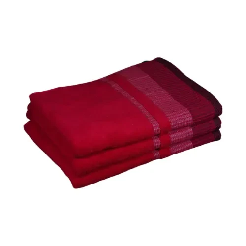 A stylish cotton bath towel featuring dark decorative stripes along the edges and across the middle. The design combines simplicity with a refined aesthetic touch, making it both practical and elegant.