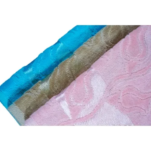 These towels are crafted from soft, highly absorbent fabric, adorned with elegant embossed patterns that add a decorative touch. They come in a variety of colors including light blue, brown, and pink, offering versatile options to suit different tastes.