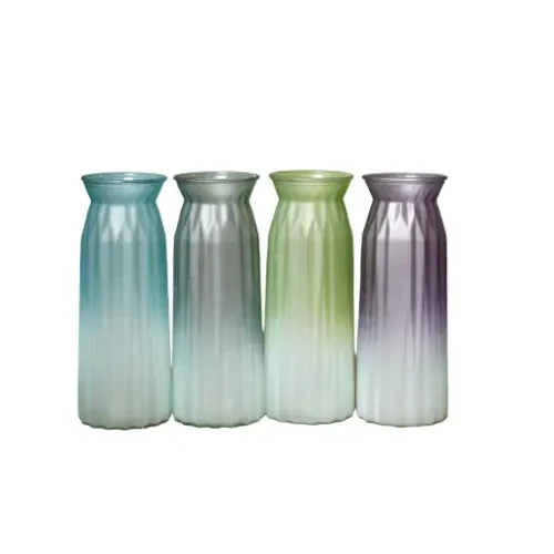 Add a magical and refreshing touch to your home corners with this glass vase set, featuring a modern ribbed design and enchanting Ombre colors.