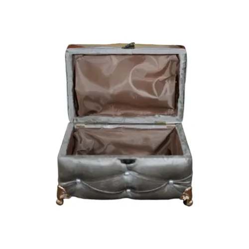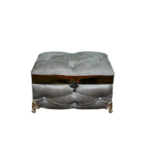 - Ornate Golden Legs: The box rests on golden metal pedestals featuring intricate carved details, elevating it from the surface for enhanced stability and a complete aesthetic look.