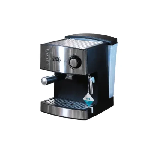 The Winning Star espresso machine is designed to prepare high-quality coffee at home or in the office. It features a sleek stainless steel body with a modern front panel and easy-to-use control buttons.