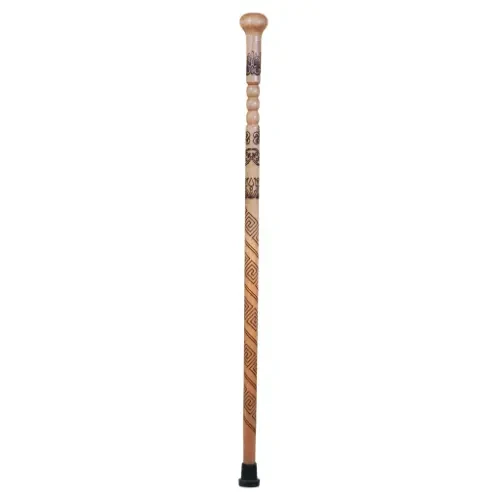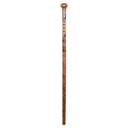 A luxury wooden cane crafted from the finest natural wood, characterized by its warm tones and intricate hand-carvings. It has been meticulously engineered to combine durability with a lightweight feel, finished with a premium coating that protects the wood and highlights the beauty of its natural grain.