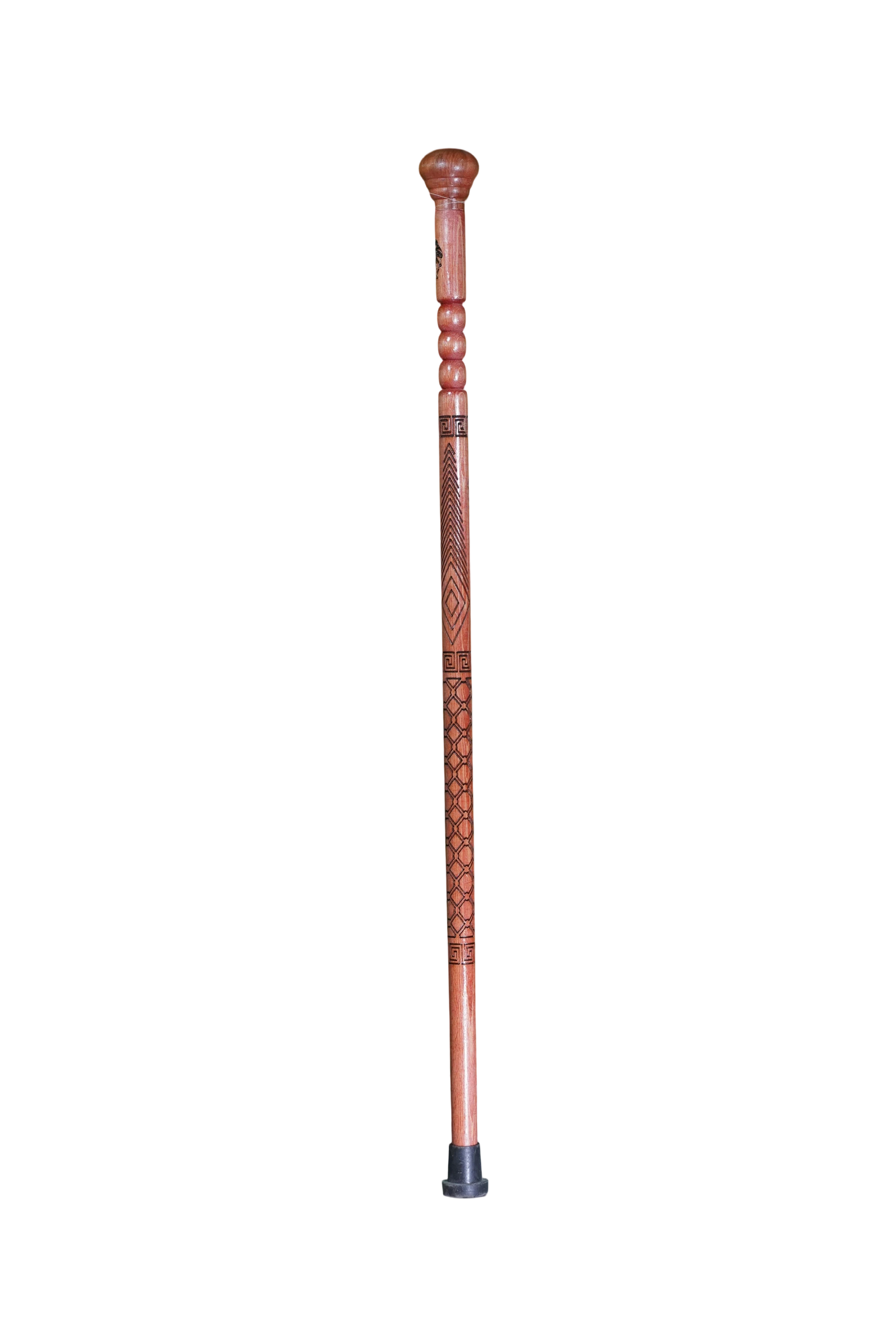 عصا مشي خشبية بنقوش هندسية متداخلة