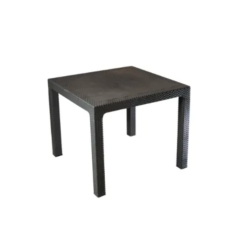 طاولة عملية مصنعة من مواد عالية الجودة والمتانة، تتميز بتصميم مربع يجمع بين البساطة والرقي. يغطي جوانبها وأرجلها نقش بارز يحاكي مظهر "الخوص" أو الروطان الطبيعي، مما يمنحها طابعاً يدمج بين الحداثة واللمسات التقليدية.