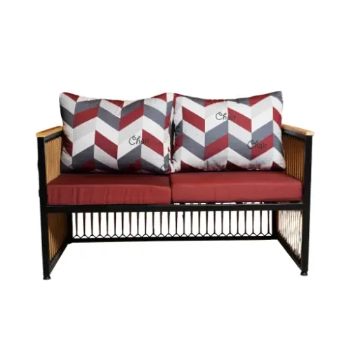 1. المقاعد: وسائد سميكة ومريحة باللون الأحمر الداكن (Burgundy)، مصنوعة من قماش عالي الجودة مناسب للاستخدام الخارجي.