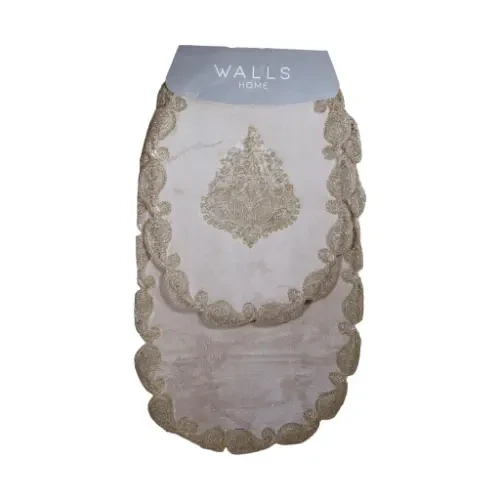 "انقلي ضيافتك إلى مستوى آخر من الفخامة مع طقم مفارش (والز هوم). بلمسات ذهبية ساحرة على قماش أبيض نقي، يعيد هذا الطقم تعريف الأناقة الكلاسيكية في منزلك. صُمم ليكون القطعة المركزية التي تلفت الأنظار وتضفي بريقاً ملكياً على طاولتك في المناسبات الخاصة والعزائم الراقية."