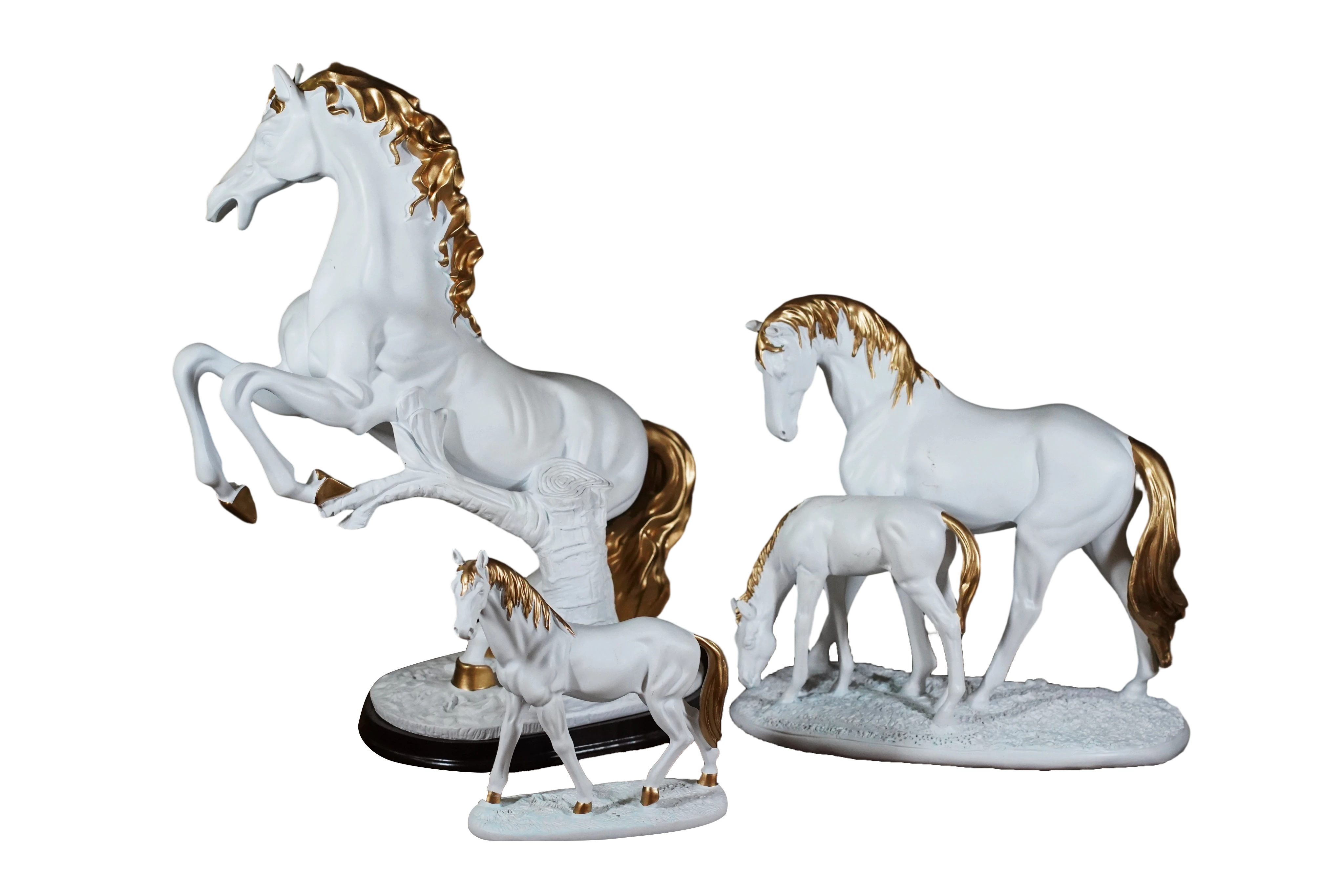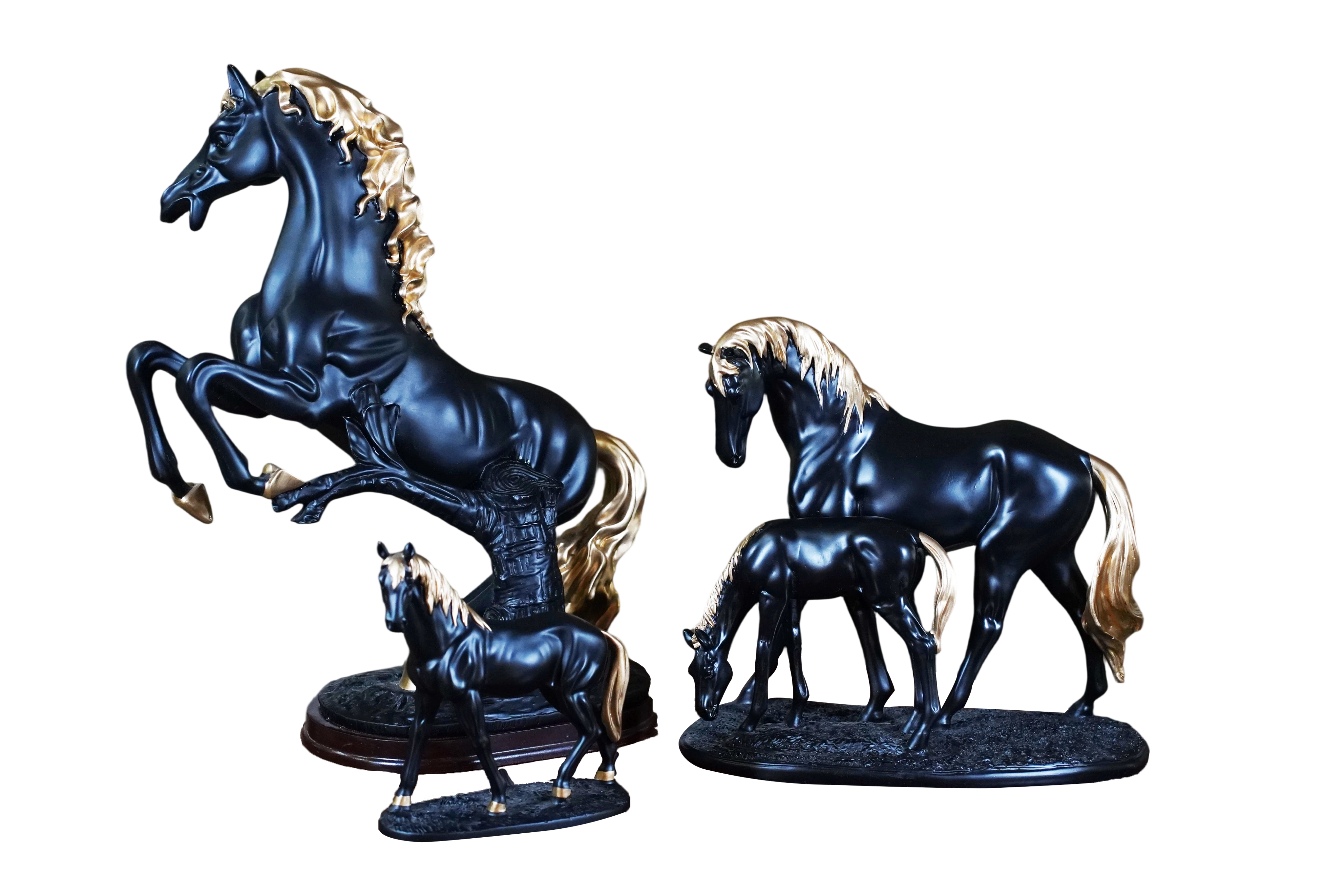 3. لون التفاصيل: ذهبي عيار (Gold Accents) على العرف، الذيل، والحوافر.